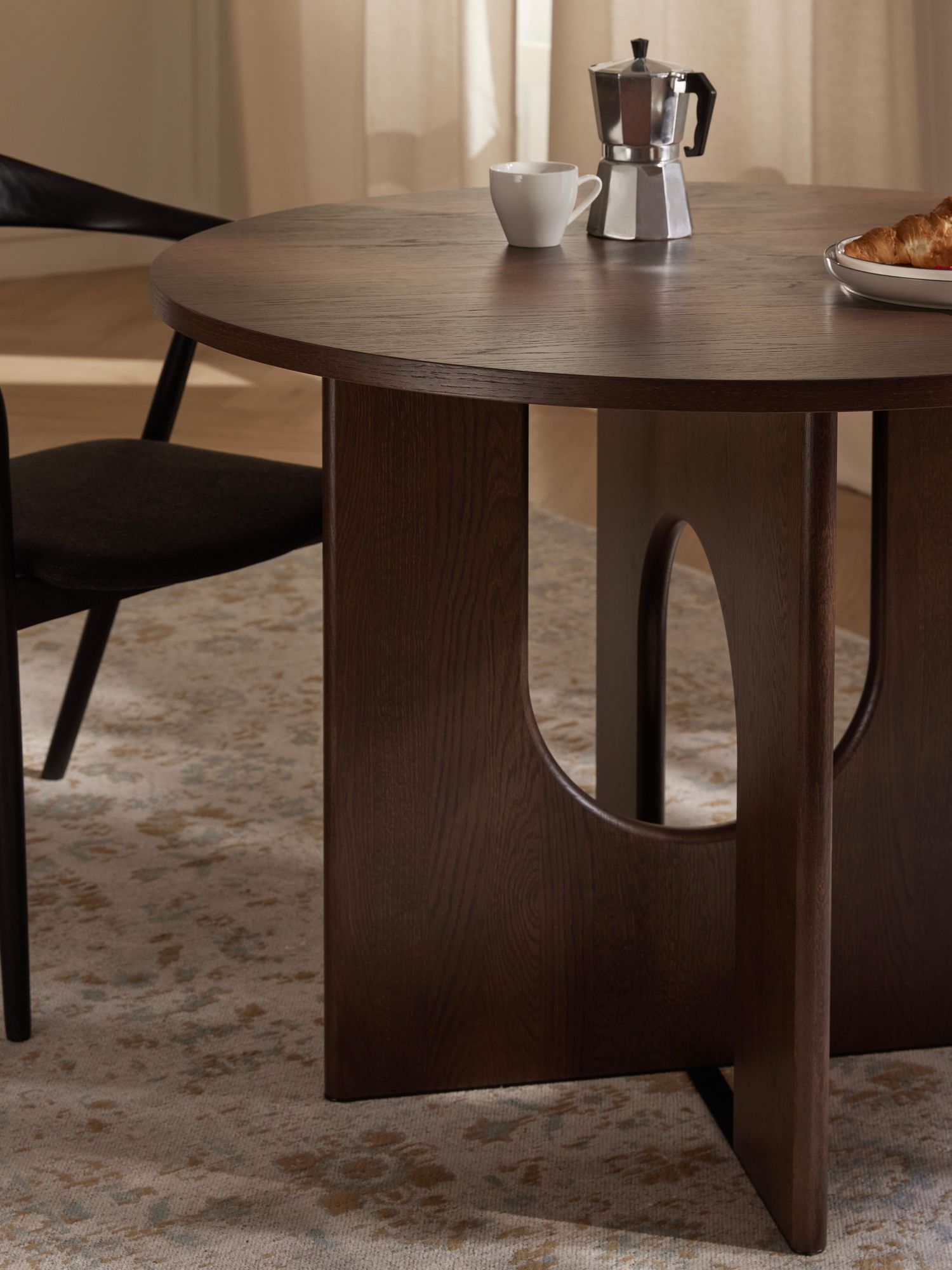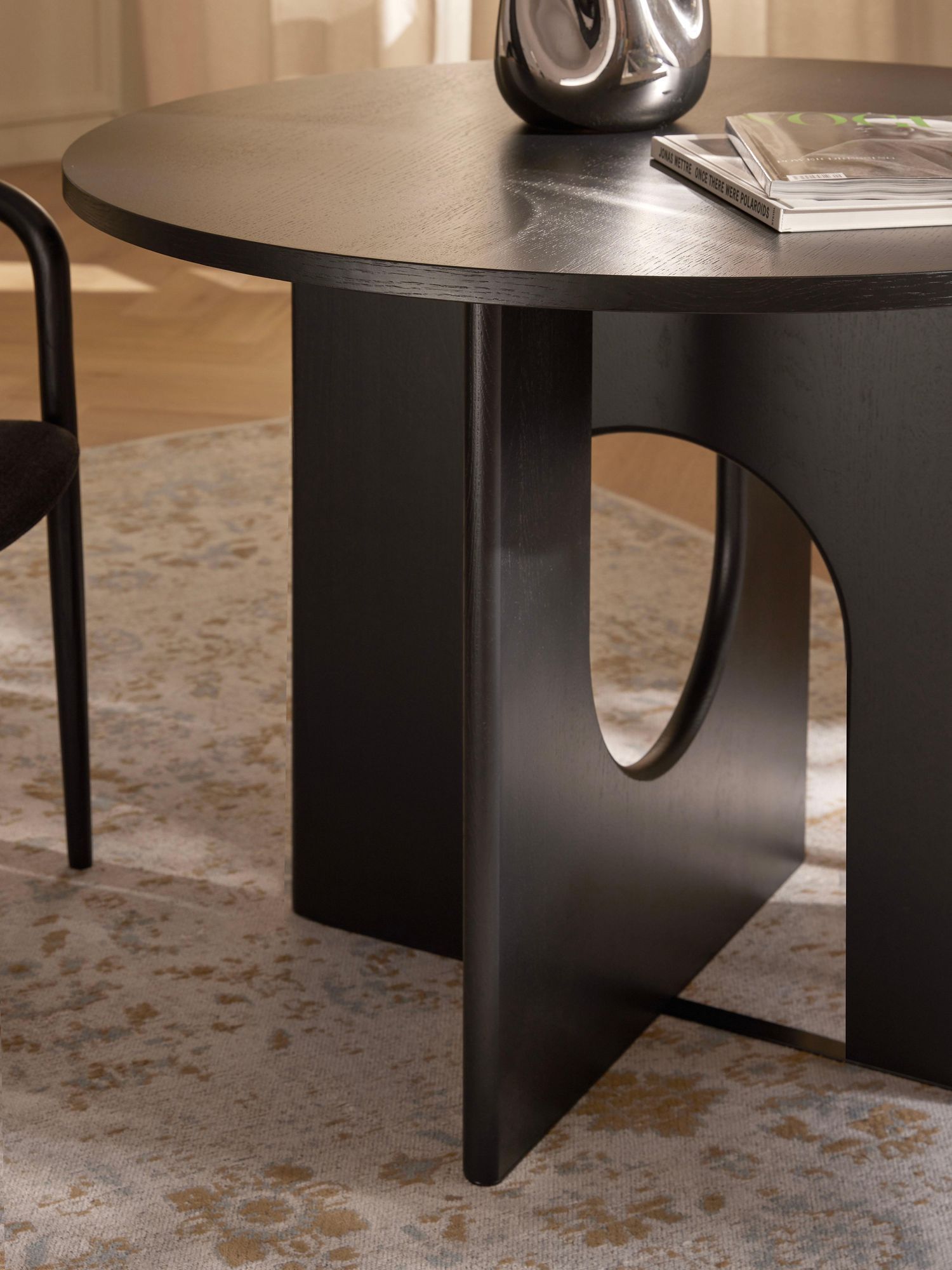 | dining tables | black, oak wood, oak wood, varnished dark brown |